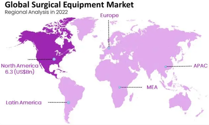 Nach regionaler Klassifizierung ist der globale Markt für chirurgische Geräte in Nordamerika, Europa, Asien-Pazifik, Lateinamerika und den Nahen Osten und Afrika unterteilt. Unter diesen Regionen dominiert Nordamerika den Weltmarkt mit einem Marktanteil von 38,0%.